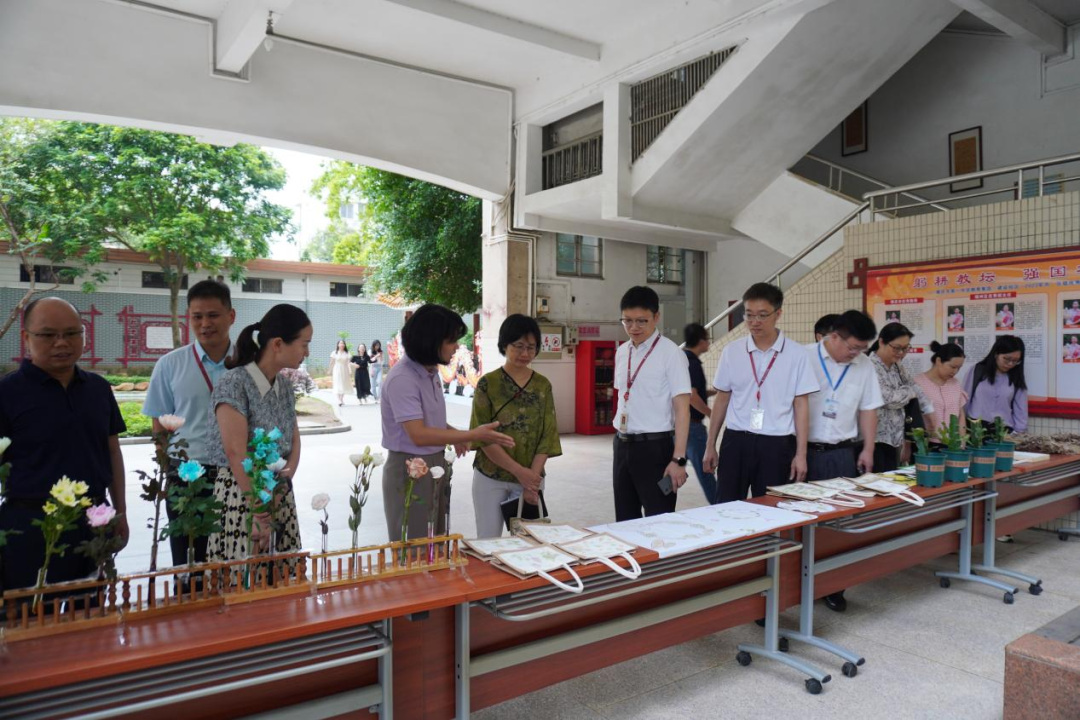交流会前,在肇庆一中董事长欧阳炼的陪同下,公司调研组一行参观了肇庆一中(建设校区)荷风长廊、涵辉池塘、校史馆及生物科组系列活动展,深入了解肇庆一中的办学发展历程、校园文化特色和生物科组教学教研成果。在生物课外科技作品展前,邵玲经理对肇庆一中生物科组开展的校本课程给予了高度评价。