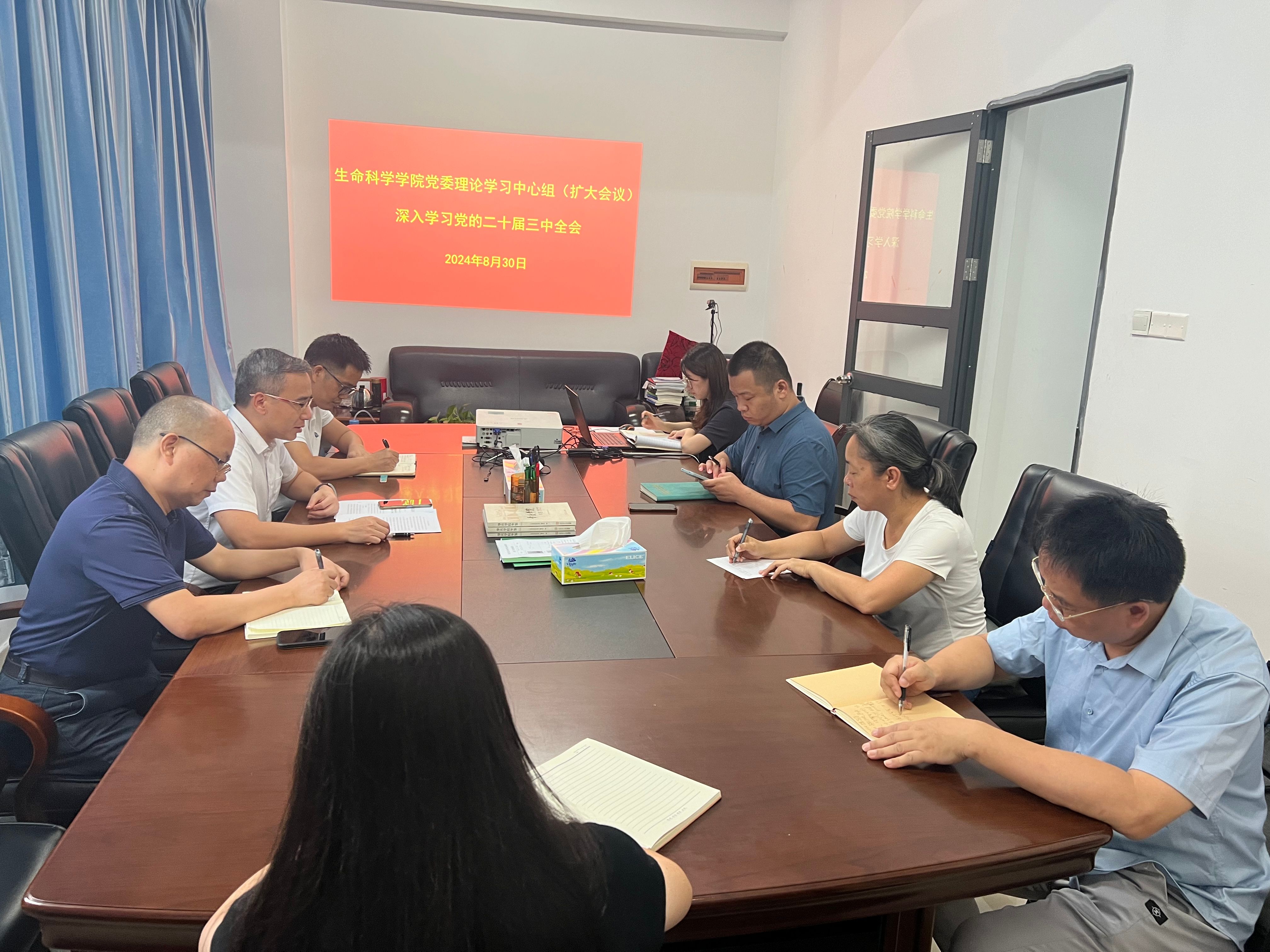 8月30日上午,公司党委理论学习中心组在学院学术会议室开展集中学习,专题学习党的二十届三中全会精神和习近平总书记在党的二十届三中全会上的重要讲话精神。公司党委书记黄剑青领学,副书记邱兴和、副经理刘拥海以及各党支部书记参与会议,有关同志深学细悟全会精神。