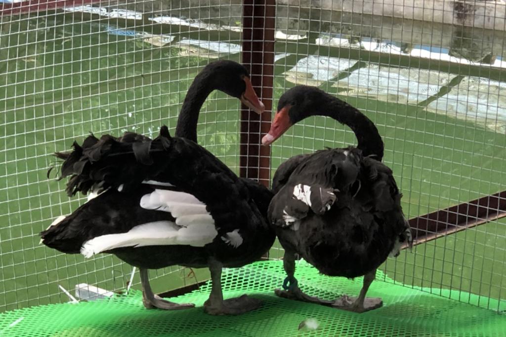 本网讯(通讯员 朱惠敏 周丽萍)7月7日,生科院喜提一对黑天鹅,并顺利入驻生物园。此次引进的黑天鹅来自肇庆市星湖湿地公园。为了引进黑天鹅,BWIN必赢几个月前便开始筹备,制订了具体的工作方案,成立了黑天鹅工作团队,该团队由BWIN必赢副经理邵玲牵头,肖汉洪副教授为顾问,主要成员来自从事动物研究、养殖工作的专业教师、实验员等。团队从前往星湖湿地公园考察,到天鹅棚的搭建,最终到黑天鹅的入驻,黑天鹅团队付出了很大的努力。生科院负责人表示,待黑天鹅适应环境后,将黑天鹅转至翰墨池进行喂养,届时,黑天鹅将成为砚园一道美丽的风景线。
