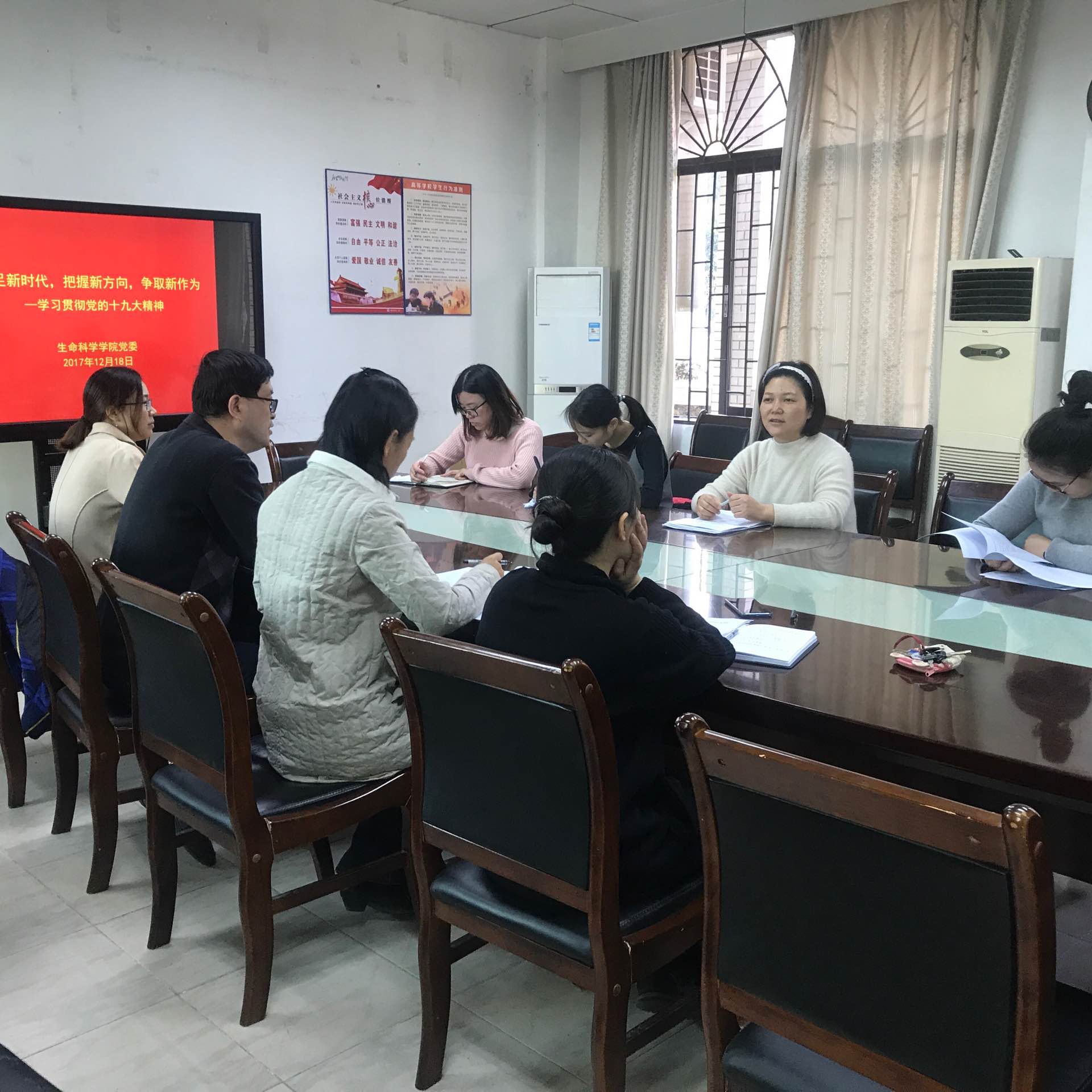 胡隼说道,“党的十九大报告历时3个半小时,数十次鼓掌,我深感震撼、深受教育。作为生科院的教职工,我们要不忘初心跟党走,撸起袖子加油干,在这美好的新时代里绽放我们的光彩和活力,早日见证中华民族伟大复兴中国梦的实现!”