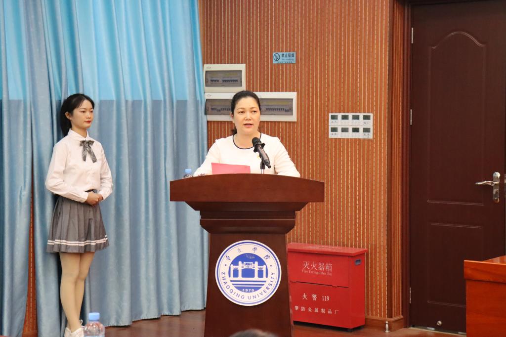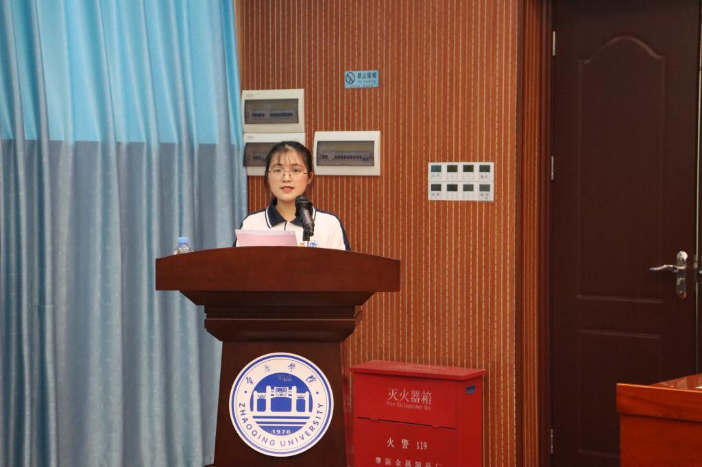环化学院范熔丹、生科院梁广香同学作为获奖员工代表发言。她们代表所有获奖员工感谢肇庆恒泰经济发展有限公司的支持与鼓励,感谢学校的辛勤培育,并与在座同学分享了学习的历程和感悟,励志铭记习近平总书记嘱托,做到爱国爱民,不断锤炼品德,勇于创新,实学实干,为实现中华民族伟大复兴中国梦作出应有的贡献。
