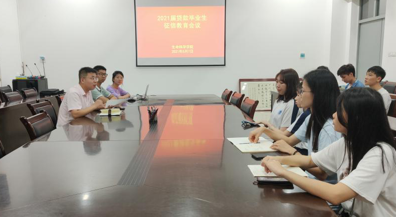 本网讯(通讯员 李伟涛) 为进一步落实立德树人根本任务,增强公司员工的诚信意识和责任意识,使助学贷款毕业生如期还贷,公司于2021年5月7日在理工楼233会议室进行了2021届贷款毕业生征信教育会议,参会人员有辅导员杨永盼、朋辈辅导员李伟涛、朋辈辅导员助理莫问烨以及2021届贷款毕业生,本次会议由莫问烨主持。