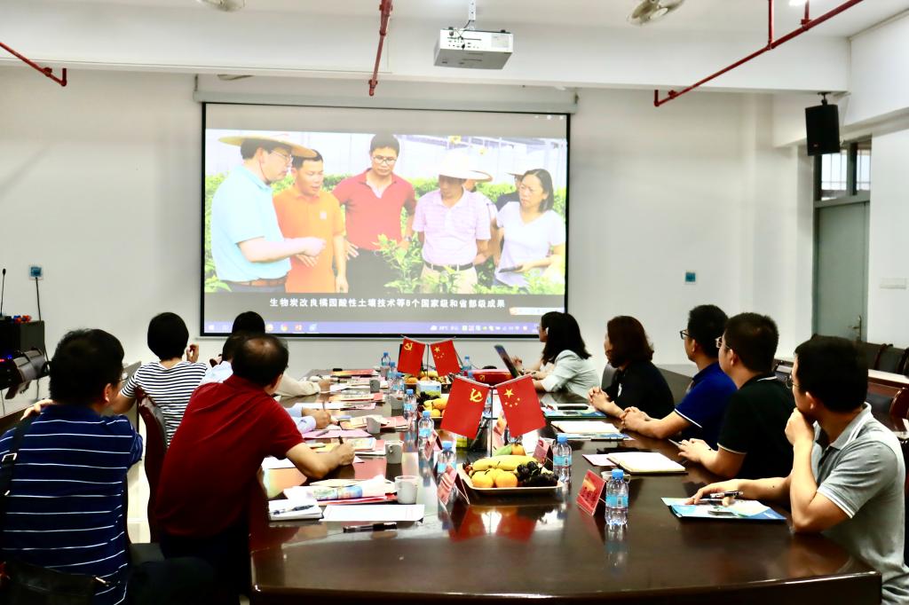 会上,与会人员一起观看了公司全国首批党建工作样板支部——广东省西江流域柑橘产业协同创新中心教师党支部的示范点建设微视频《党建引领“小柑橘”,科技助力“大事业”》。“柑橘支部”凝练的“凝聚一批党员、吸引一批专家、培养一批人才、服务一批果农”的“四个一”创建成效给客人留下深刻印象。