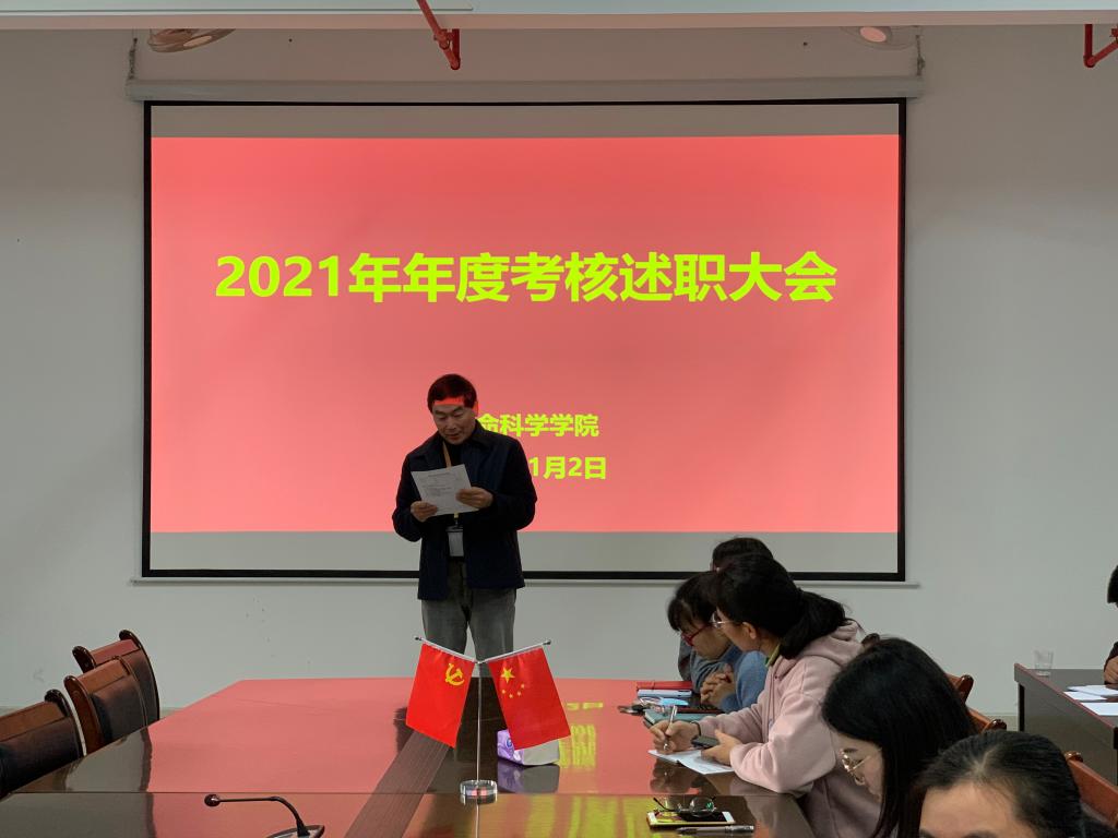 2022年1月02日,BWIN必赢举行2021年聘用制教师年度总结考核大会,21名聘用制教师参加此次会议,BWIN必赢学院副经理邵玲主持总结考核大会。