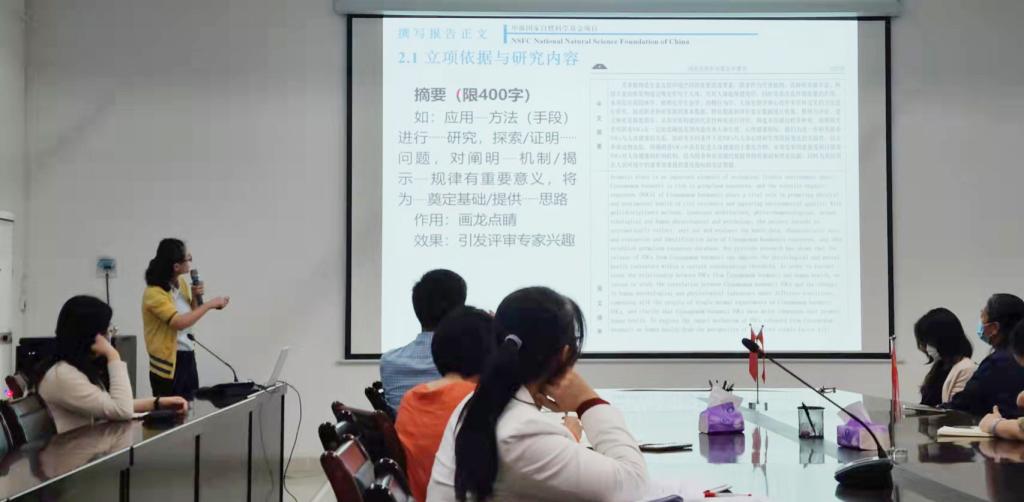陈华教授结合自身国家自然科学基金申报经历分享了心得体会,对思考项目选题、撰写报告正文、修正格式内容、定稿提交信方面等关键环节进行了深刻论述,给参会教师特别是青年教师的基金项目申报带来许多启发。