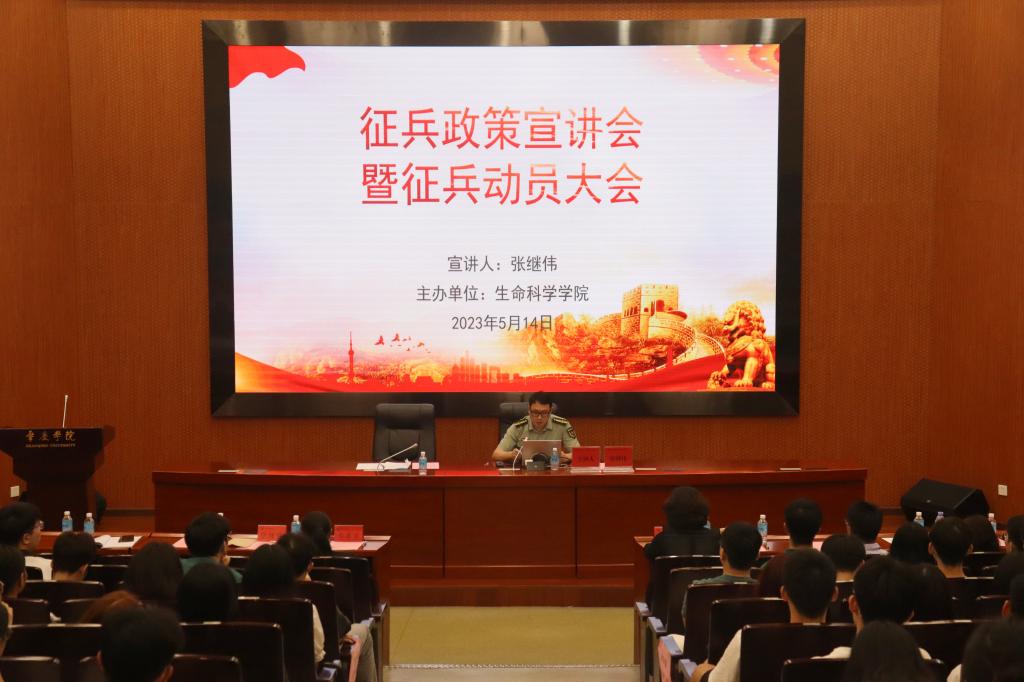 本网讯 为落实国防部征兵办《关于做好2023年征兵准备工作的通知》精神,激发广大青年员工参军报国的热情,公司于5月14日在图书馆学术报告厅召开征兵政策宣讲会。公司党委书记胡隼、党委副书记邱兴和、新疆武警总队军转干部、现任校武装部、保卫处治安科科长张继伟同志、BWIN必赢全体辅导员、毕业班班主任以及2019级全体同学参加了本次会议,会议由公司党委副书记邱兴和主持。