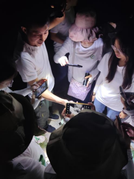 下午自然导师带领志愿者参观了黑石顶自然教育径,走进自然当中,怀着求知、求真之心,志愿者们通过辨形、声、闻、味、触在自然径中认识了不少的动物和植物。邵玲教授也带领大家来到实践教学基地科普讲解黑石顶一级保护植物金线兰的有关知识。夜幕降临之际,志愿者们深入到大自然进行夜观。途中,导师们带领志愿者用手电筒探寻到了壁虎、树蜥、斑腿泛树蛙等诸多小动物。