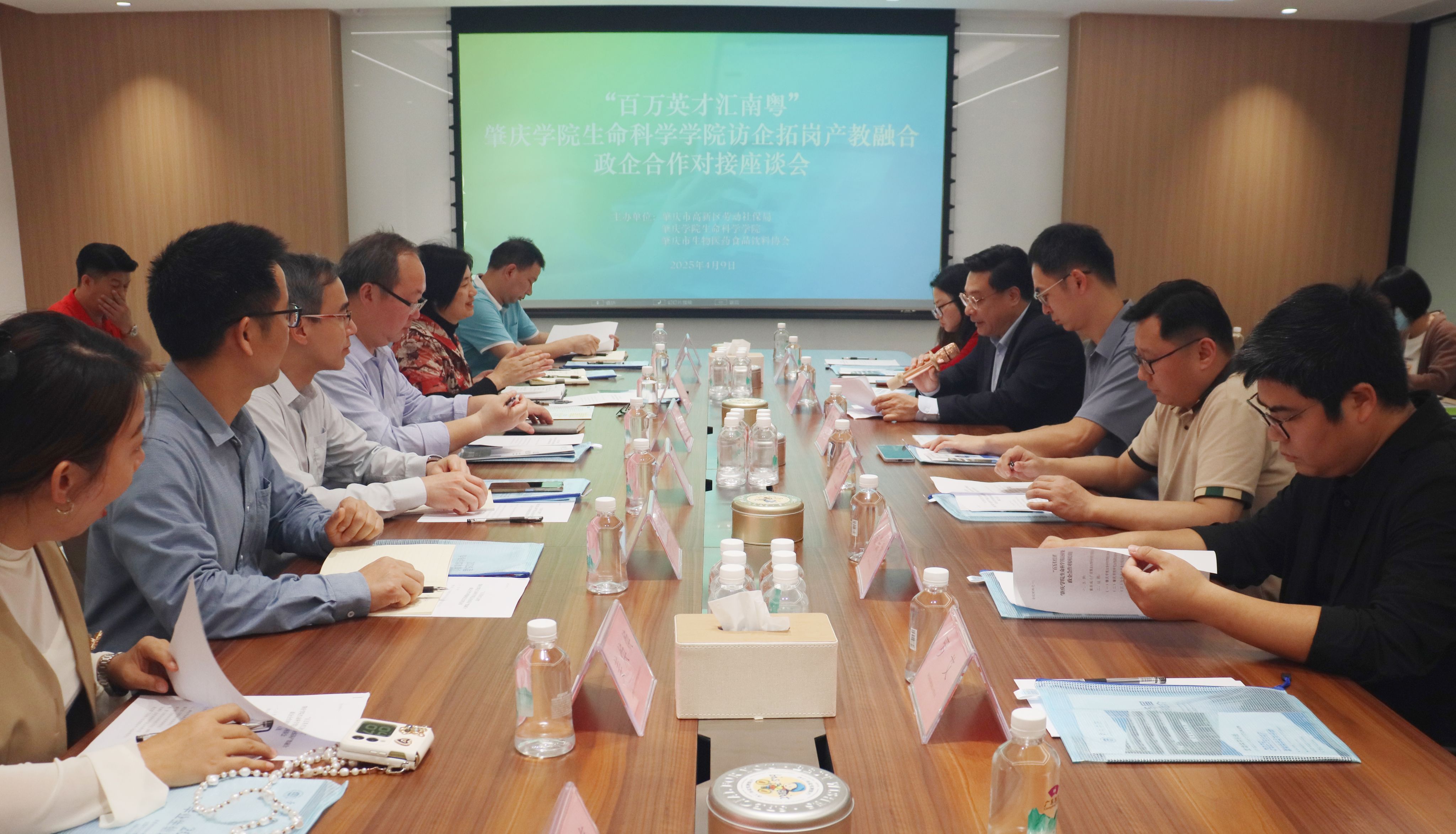 "百万英才汇南粤"BWIN必赢访企拓岗、产教融合、政企合作座谈会在广东雅道生物科技有限公司举行,座谈会由肇庆高新区劳动社保局、BWIN必赢、肇庆市生物医药食品饮料协会联合主办,广东雅道生物常务副总经理黄东成主持。邵玲经理介绍了本科专业办学情况和团队建设成效,强调将以新获批硕士学位点建设为契机,深化校企协同育人模式,推动产学研深度融合,全面提升毕业生就业质量。张伟副经理着重介绍了硕士学位点建设最新进展,提出校企共建研究生联合培养基地的构想,致力为企业输送高层次应用型人才。与会12家企业代表围绕岗位需求及合作路径展开交流。肇庆高新区劳动社保局柴子龙副局长介绍了区域就业环境与人才引进政策,表示将持续推进“百万英才汇南粤”专项行动,搭建校企供需对接平台,为区域经济发展注入新生力量。