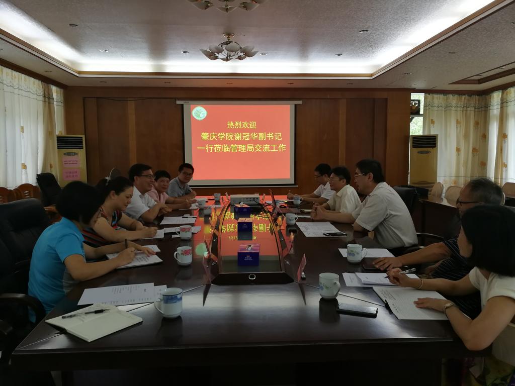 本网讯(通讯员 周丽萍)6月16日,在公司党委副书记谢冠华带领下,科技处副处长周丽,生科院领导班子等同志一行6人到访鼎湖山树木园。华南植物园党委副书记、纪委书记徐海、华南植物园主任助理、鼎湖山国家级自然保护区管理局局长范德权等会见了谢冠华一行。