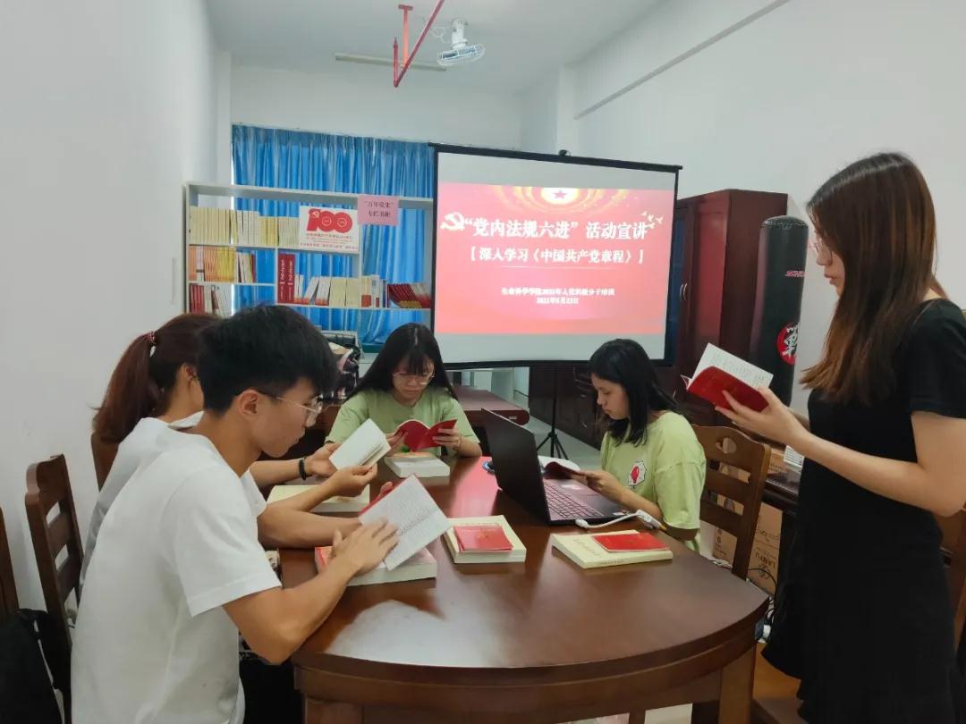 “学”字当头,扎实做好“规定动作”。在活动的开始,学院专职组织员为入党积极分子进行党章党规学习培训,结合“党内法规六进”宣讲的主要内涵,重点学习了《中国共产党章程》等内容,明确了入党的基本条件以及党员的权利和义务,进一步加深入党积极分子、发展对象对党章党规的认识。