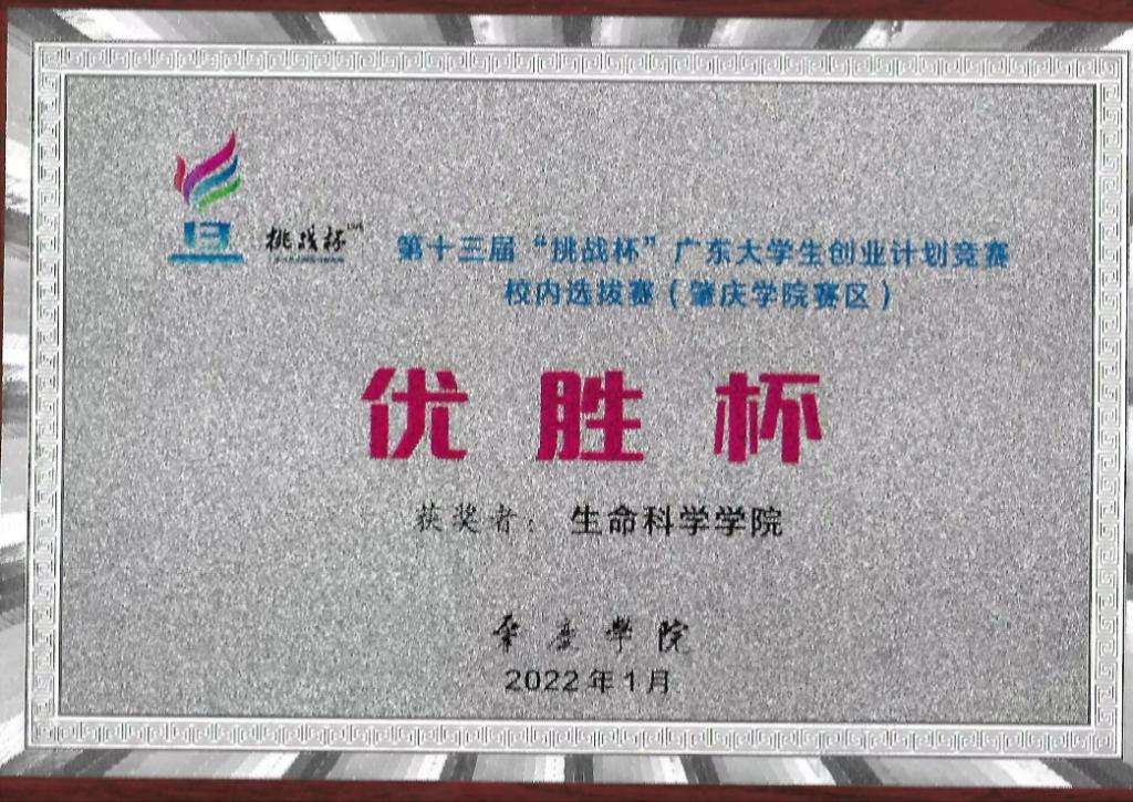 2022年荣获第十三届“挑战杯”广东老员工创业大赛(BWIN必赢赛区)荣获优胜杯